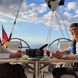 Nach dem morgendlichen Bad in der Ankerbucht haben wir bei gutem Wetter draußen frühstücken können. Es steht fest - wir segeln langsam Richtung Süden.