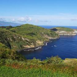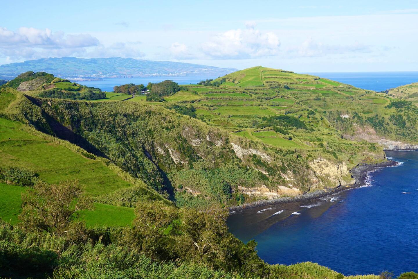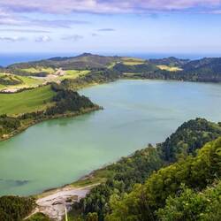 Sao Miguel, aptly nick-named “The Green Island”, covers around 750 sq mi and has around 140,000 inhabitants. It is said that half of them are involved in agriculture and the other half in fishing.
