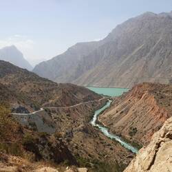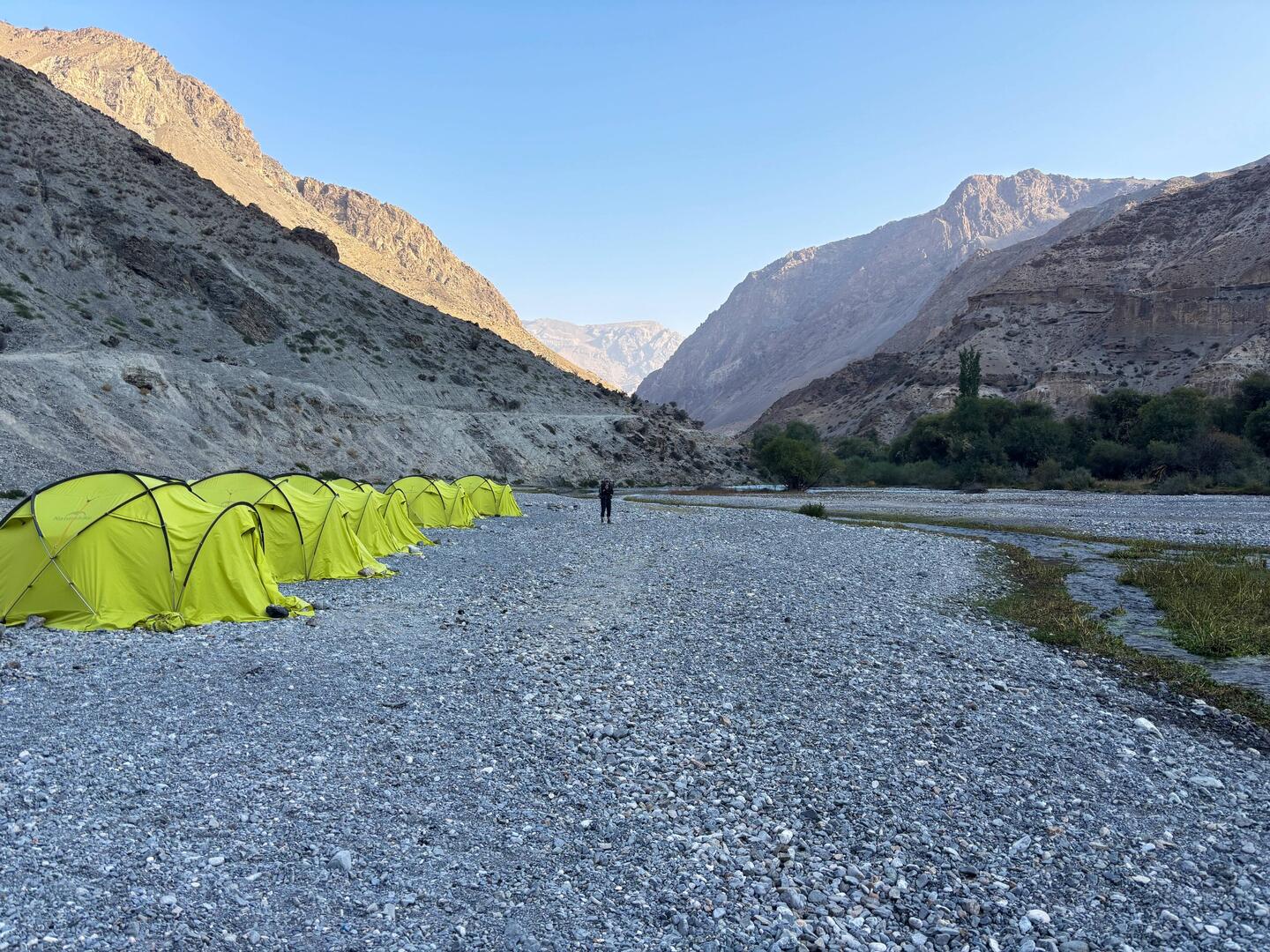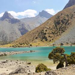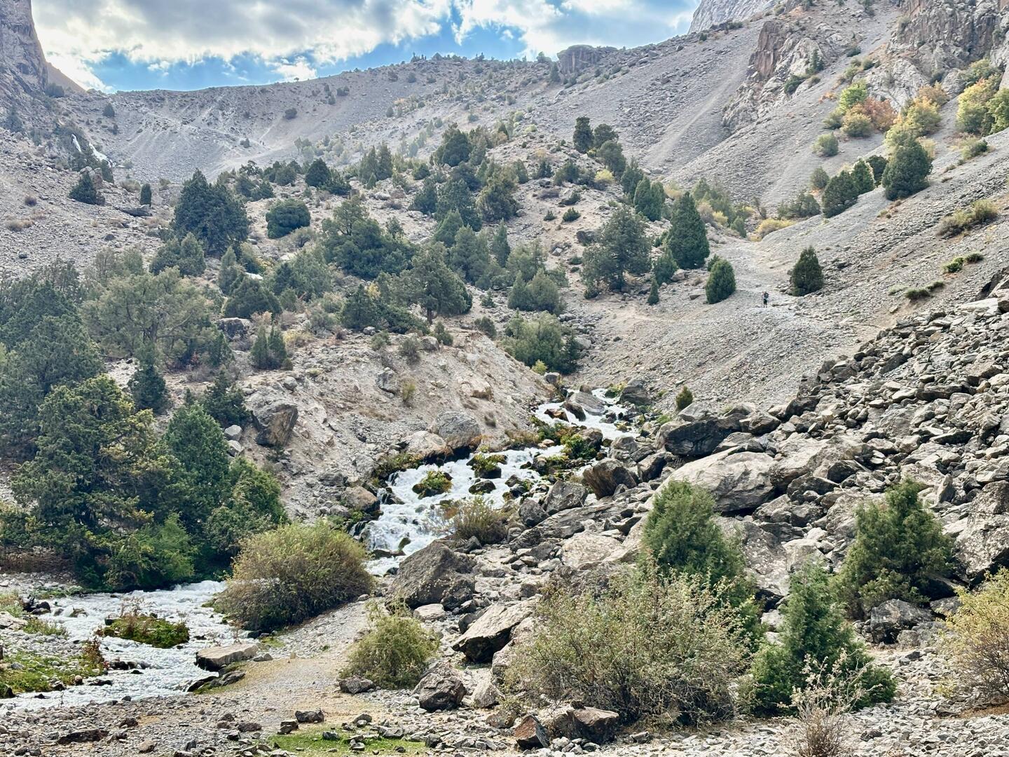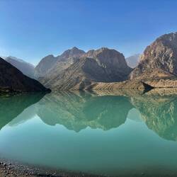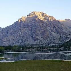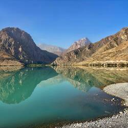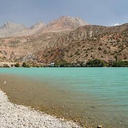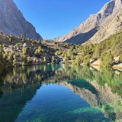 We awoke to a calm lake and blue skies, making the reflection of the mountains in the Iskander Lake truly stunning. After a delicious fresh air breakfast, we hit the road again and travelled byLeggi altro