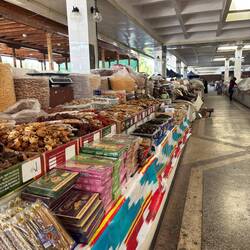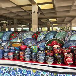 Today was a free day to immerse ourselves in this enchanting Silk Road city. We took an early morning stroll down to the Slyob Bazaar where I purchased a nice quilted jacket. Gilles and I both neededLeggi altro