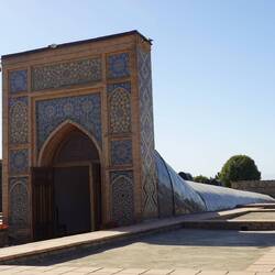 Our 4th stop was the Bibi Khanym Mosque, built by Tamerlane in the 15th century for his favourite wife. The first photo is one of a mosque that she built and claimed was big. Her husband built oneLeggi altro
