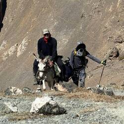 We have 14 donkeys, 5 donkey handlers plus a cook and extra guide named Saddulatrekking with us for the next week. Feeling a wee bit like royalty! While we ate breakfast, the tents were disassembledLeggi altro