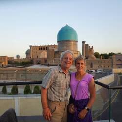 We spent the day today touring the amazing city of Samarkand, the cultural capital of the the Islamic World. Our guide, Rousland, is a gifted storyteller and had us spellbound as we followed in theLeggi altro