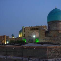 We dined on the rooftop of a beautiful restaurant located directly behind the Registan Square and watched the sun come down. The weather was warm and the food and drinks were delicious. After dinnerLeggi altro