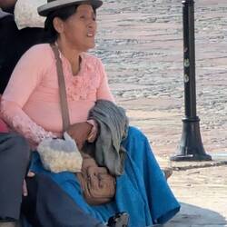 Gerade erwähnte ich die Cholita. Als chola (wie Misch- Indigene – manchmal auch abwertend – genannt wurden) oder (verniedlichend) cholita werden indigene Frauen bezeichnet, die sich nach einer in den 1920er Jahren aus Europa nach Südamerika importierten Mode mit ursprünglich für Männer entworfenen Hüten kleiden. Ein italienischer Huthersteller hatte zu dieser Zeit nämlich versehentlich eine große Lieferung von Herrenhüten im Melonestil nach Bolivien exportiert. Bei Männern fanden diese allerdings keinen Anklang, und so begann die Importfirma, sie stattdessen als aktuelle italienische Frauenmode an arme Frauen zu vermarkten.