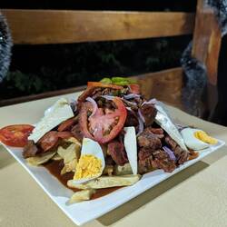 Zum Abschluss ein Abendessen bei Marcelina, ein Google-Tipp, der mal funktionierte (auch wenn ich keine Marcelina sah, sondern nur einen hiipyesken Marcelo, aber darum geht´s ja nicht ...). Pique Macho, eine Art bolivianisches Gulasch, Costeleta, Hamburger (natürlich) und Sfijas (Empanada auf bolivianisch) - gut war´s, und das für kleines Geld. Gehen wir bestimmt wieder hin.Baca lagi