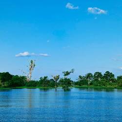 Nach dem Frühstück wurden wir von einem Guide von Amazon Green Tours abgeholt, der uns zunächst zum Hafen von Manaus bringt. Dort wartet schon ein Motorboot, das uns hinüber auf die andereLue lisää