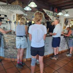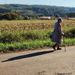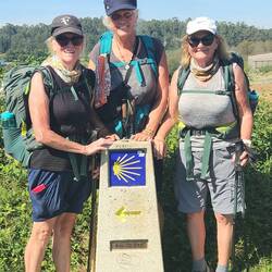 A group of walkers leaving early, getting an early start for knowing it will be a hot day.