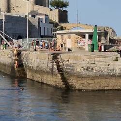 This is a boating and a fishing town. The children and dogs jump from the old Roman ruins to the cove off the bay. I enjoyed watching these boys throw themselves off the oldstone steps, and as youRead more