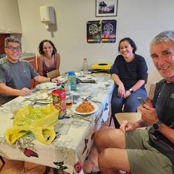 Pablo rode his bicycle with 3 other amigos for 4 caminos in past years. So he supports the camino walkers by putting up signs of painted names of the different cities of walkers from all around theRead more