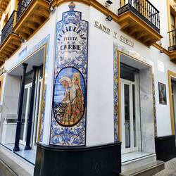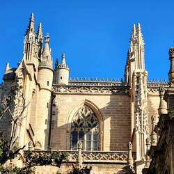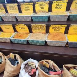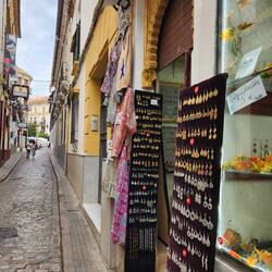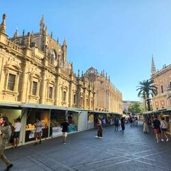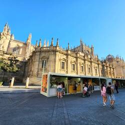 There are artist shops displayed beside the Catedral de Santa Maria de la Sede y de la Asuncion de Sevilla. The delicious aromas of spices, incense, and sweet baked goods are everywhere!