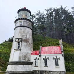 The walk-up to Heceta Light House is an easy walk that takes you through a lush green wooded trail. There would be gorgeous views, I'm sure, if it wasn't such a grey rainy day. But even this day wasRead more