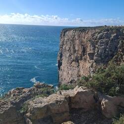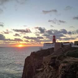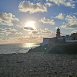Ich habe nun die letzte Etappe für heute hinter mir, Sagres die Burg und den Leuchtturm besichtigt, nun warte ich am Leuchtturm auf den Sonnenuntergang.