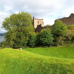 Für den Tag in den Highlands hatten wir einen Ausflug vorab gebucht. Der Bus brachte uns nach Cawdor Castle, Loch Ness, Inverness und retour. Regen im überraschend vielfältigen Schlossgarten, SonneLæs mere