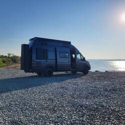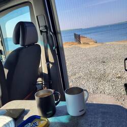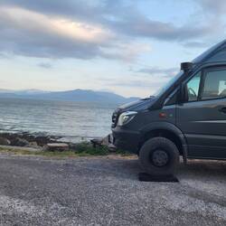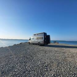 Aus versorgungstechnischem Gründen haben wir heute einen Campingplatz angefahren. Hier stehen wir direkt am Wasser.