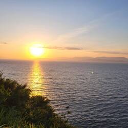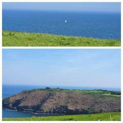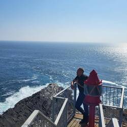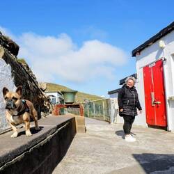 Heute stehen wir wieder mal oberhalb des Atlantik auf den Klippen mit einer gigantischen Aussicht. Und Besuch vom Hund des Leuchtturm Wärters hatten wir auch gerade.