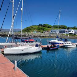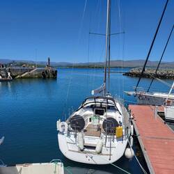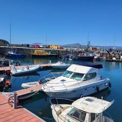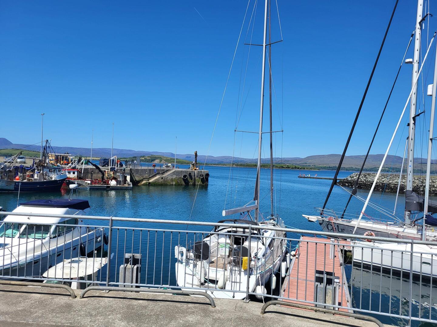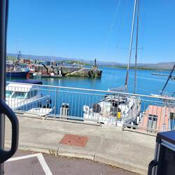 Bei sonnigen 24 Grad trinken wir Kaffee im Hafen von Bantry.