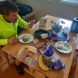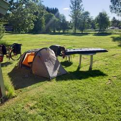 Wie immer, in den letzten Tagen, hat uns die Sonne 🌞 recht früh geweckt. Alles zusammen geräumt,und dann im Servicehus unser Frühstück zu uns genommen. Die 8 Kilometer auf dem Fahrrad warenLäs mer