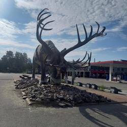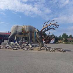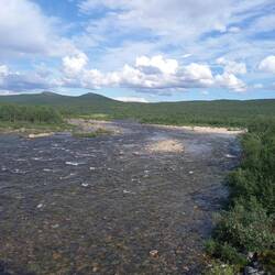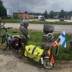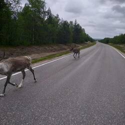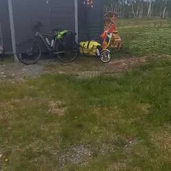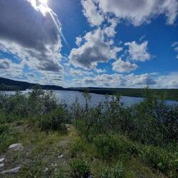 Heute hat die Hitze uns schwer zugesetzt. Bei 28 Grad und Sonne aus vollem Rohr haben wir 69 Kilometer geschafft. Auf unserer heutigen Tour haben wir unser erstes Rentier in Wildnis gesehen, undLäs mer