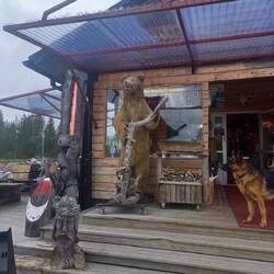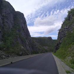 Bin um 8.45 Uhr gestartet, und dann immer dem Regen davon gefahren.Als es mich dann doch einmal erwischt hat, konnte ich mich in einer Bushaltestelle unterstellen. Unterwegs habe ich zwei NordkappLäs mer