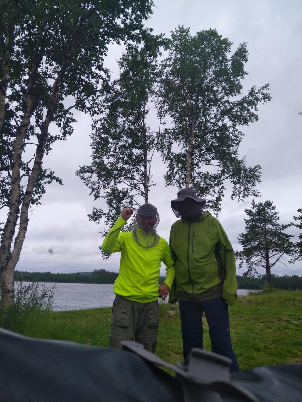 Heute Morgen sind wir um 6.00 Uhr aufgestanden. Nachdem Abbau und Frühstück sind wir voller Elan vor den Mücken in Richtung Norwegen aufgebrochen. Nachdem wir über die Norwegische Grenze gekommenLäs mer