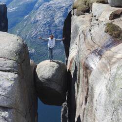 NorwayMichele el Viajero LocoShow tripAdd to bucket listRemove from bucket listShareDay 9Thursday, June 1, 2017 at 4:19 PM ☁️ 10 °C Altitude: 981 m NorwaySandnes59.033722, 6.59327759°2’1” N 6°35’36” EKjeragbolten June 1, 2017 in Norway ⋅ ☁️ 10 °C 0 likes Show trip