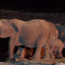 Elephants and rhinos in the night