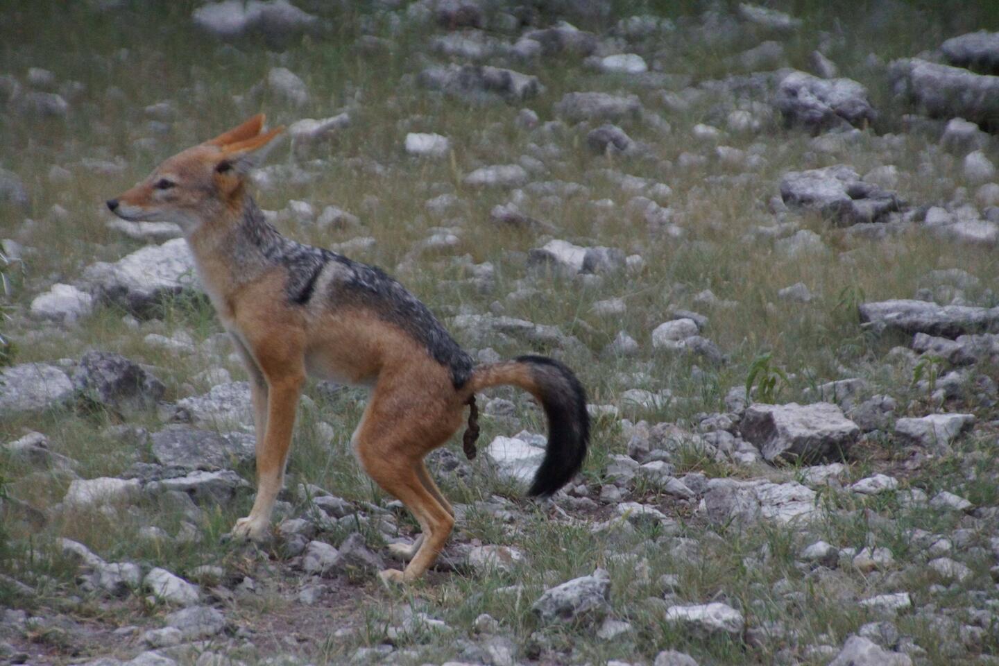 Black-backed Jackal does his business