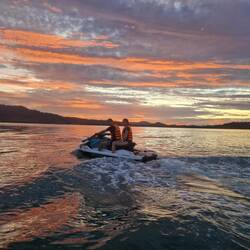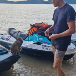 Heute gab es wieder eine frische Kokosnuss zum Frühstück im Ruby Cafe. Kurz nach 2Uhr ging es dann los auf die Jetski tour. Ohne viel Instruktion heizten wir in einer Gruppe von Insel zu Insel.Leer más