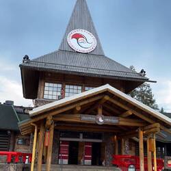 Auf dem Weg halten wir im Weihnachtsmann-Dorf in Rovaniemi an. Das Dorf liegt auch zufällig genau am Arctic Circle. Als wir ankommen treffen wir auf andere Teams und bekommen mehrere „Rezensionen“ ihrer Erlebnisse: „Geht da nicht hin“, „Ich habe noch nie einen Freizeitpark gesehen, der nur aus Geschenkläden besteht“ und „Man kann ein Foto für 30€ mit dem Weihnachtsmann machen. Ich bin wieder gegangen“. Wir gehen trotzdem hin und stellen fest: sie hatten recht. Zudem war die weihnachtliche Musik bei sonnigen 26°C unpassend. Witzig: Man kann hier Post in den Briefkasten werfen, die dann genau zu Weihnachten ankommt.