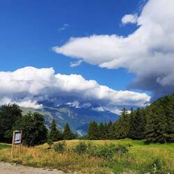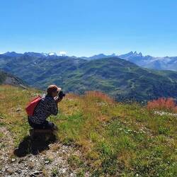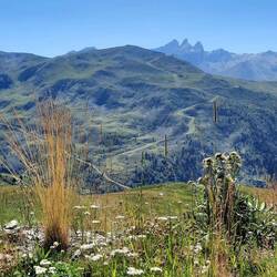 Arrivés aux Jeux site à 2400 m, le panorama s'ouvre sur les Aiguilles d'Arves et la Meije trônant sur les Ecrins,Read more