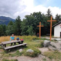 Parking de l Armera, prêt à suivre la magnifique piste forestière qui aboutit à une petite chapelle et ses trois Croix.