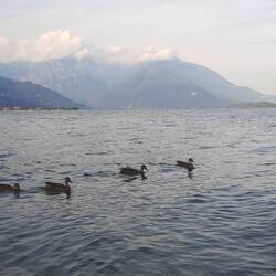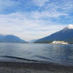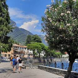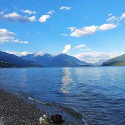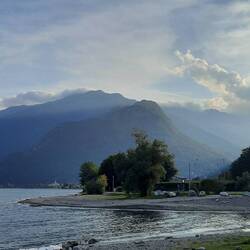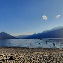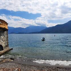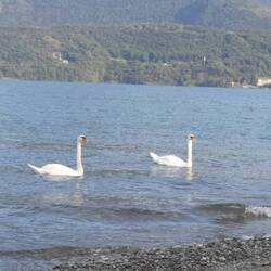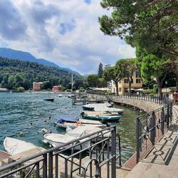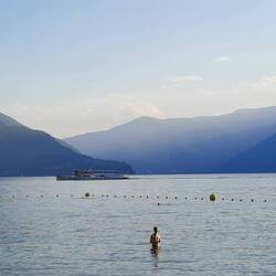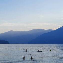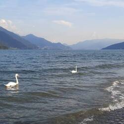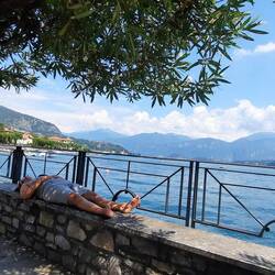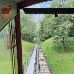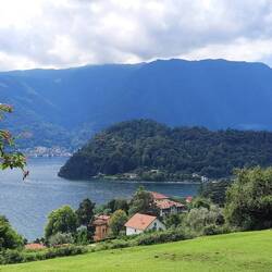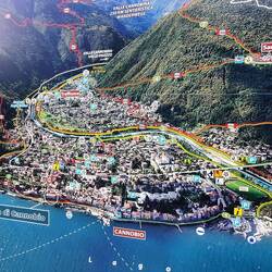 En haut! Le long du lac de Laguno, 1ere halte en Suisse. Option grimpette, sous option touristique avec le funicolare del Monte Bré!