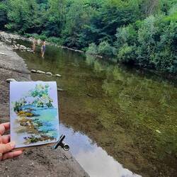 Notre artiste fut inspirée par la transparence de l'eau, son étrange calme entre 2 cascades, son chemin dans laRead more