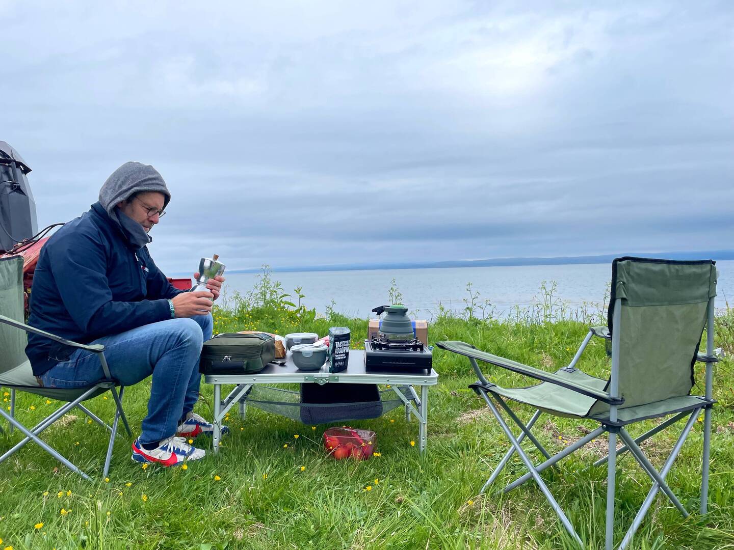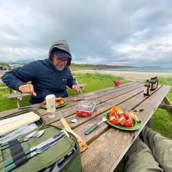 BBQ 🍗 in the rain 🌧️ steak 🥩 & salmon 🍣 was Flying away from our plates.
