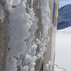 Auf dem Jungfraujoch ist irgendwie alles sehr weitläufig. Wir entschieden uns der Beschilderung zu folgen. Die TOUR führte uns durch einen langen Gang bis zum Lift hoch zur "Sphinx" - 108m in etwa 15 Sekunden (Schindler!). Nun erwartete uns auf 3570m eine Aussicht über den Aletschgletscher - atemberaubend, herrlich. Ohne Wind und bei ca. 0 Grad Lufttemperatur - frieren, kein Thema! Wieviele Leute es hier oben wohl hat, wenn nicht Corona ist? Kein Anstehen beim Lift, kein Gedränge auf der Platform um die besten Plätze, die Gänge oft für uns alleine - so passt es! Nach den Aussichten, die Ansichten im Eispalast. Es war schon etwas glatt, aber wir konnten uns gut auf den Beinen halten. Ganz im Gegensatz zu einer Asiatin, die es schon in der ersten Kurve auf den Hintern gehauen hat. Ein kleines Schmunzeln konnte ich mir nicht verkneifen. Im Eispalast sind verschiedene Skulpturen in Eis zu sehen. Charlie Chaplin, Eisbären, Iglu, Blumen, usw. IM Eis haben wir auch Sid, das Riesenfaultier aus Ice Age, gesehen. Wieder durch ein paar Gänge kamen wir dann in den Hauptteil, von wo wir uns hinaus auf das Schneefeld wagten. Wir konnten zuschauen wie ein Helikopter verschiedene Transporte ums Haus besorgte. Diese Piloten können echt was!