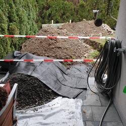 Weiter ging es zwischen den Felswänden bis zu den Trümmelbachfällen, welche sich im Felsinnern einen Weg gesucht haben. Leider war der Zugang gesperrt und wir müssen den Besuch vertagen. Bevor wieder ins Auto stiegen spazierten wir noch durch Lauterbrunnen - auf der Suche nach einem Mitbringsel. Etwas glücklos kehrten wir dann beim Bahnhof um und machten uns definitiv auf den Heimweg vorbei an Thuner- und Brienzersee und über den Brünig. Zuhause fanden wir dann eine Baustelle vor. Der Anschluss an die Fernheizung hat unser Haus erreicht.