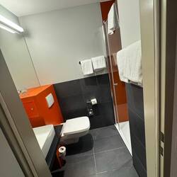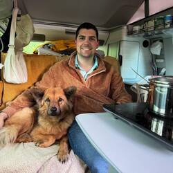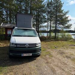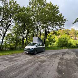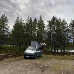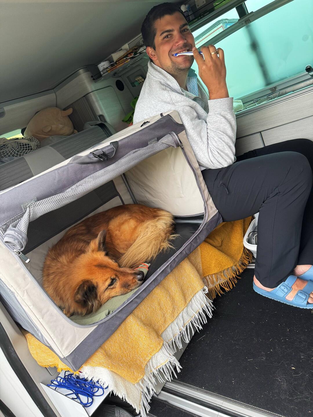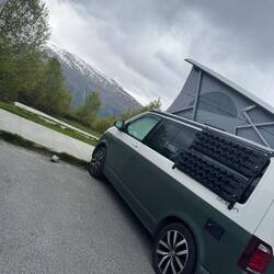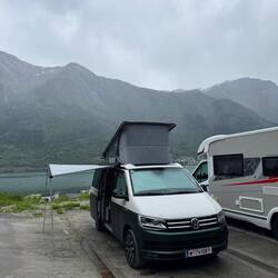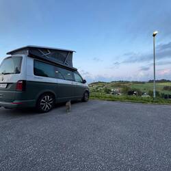 Die Nacht war leider alles andere als erholsam. Es hat heftig gestürmt und stark geregnet. Für Pascal war es unmöglich, im Aufstelldach zu schlafen, also mussten wir uns das untere Bett teilen – nicht gerade bequem, und ob wir dadurch mehr Schlaf bekommen haben? Eher nicht 😬