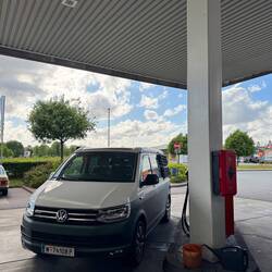 Ein kurzer, aber lohnender Abstecher führte uns auf eine Tankstelle in Tschechien, wo wir Carli für nur € 1,22 pro Liter nochmal vollgetankt haben – ein echtes Schnäppchen!
