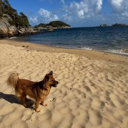 Als es ihr zwischenzeitlich zu warm wurde, gab’s noch eine kurze Abkühlung im Meer – vermutlich das letzte Mal, bevor es wieder Richtung Heimat geht. 🌊