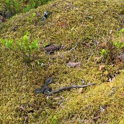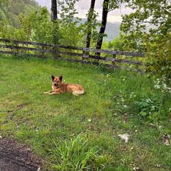 Gestärkt von der Torte machten wir uns dann auf die Suche nach einem Schlafplatz und fanden einen herrlich ruhigen Ort an einer abgelegenen Forststraße. Nanuka war im Glück – endlich frei auf einer Wiese herumliegen! Und wir genossen das Zwitschern der Vögel unter saftig grünen Bäumen.