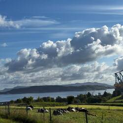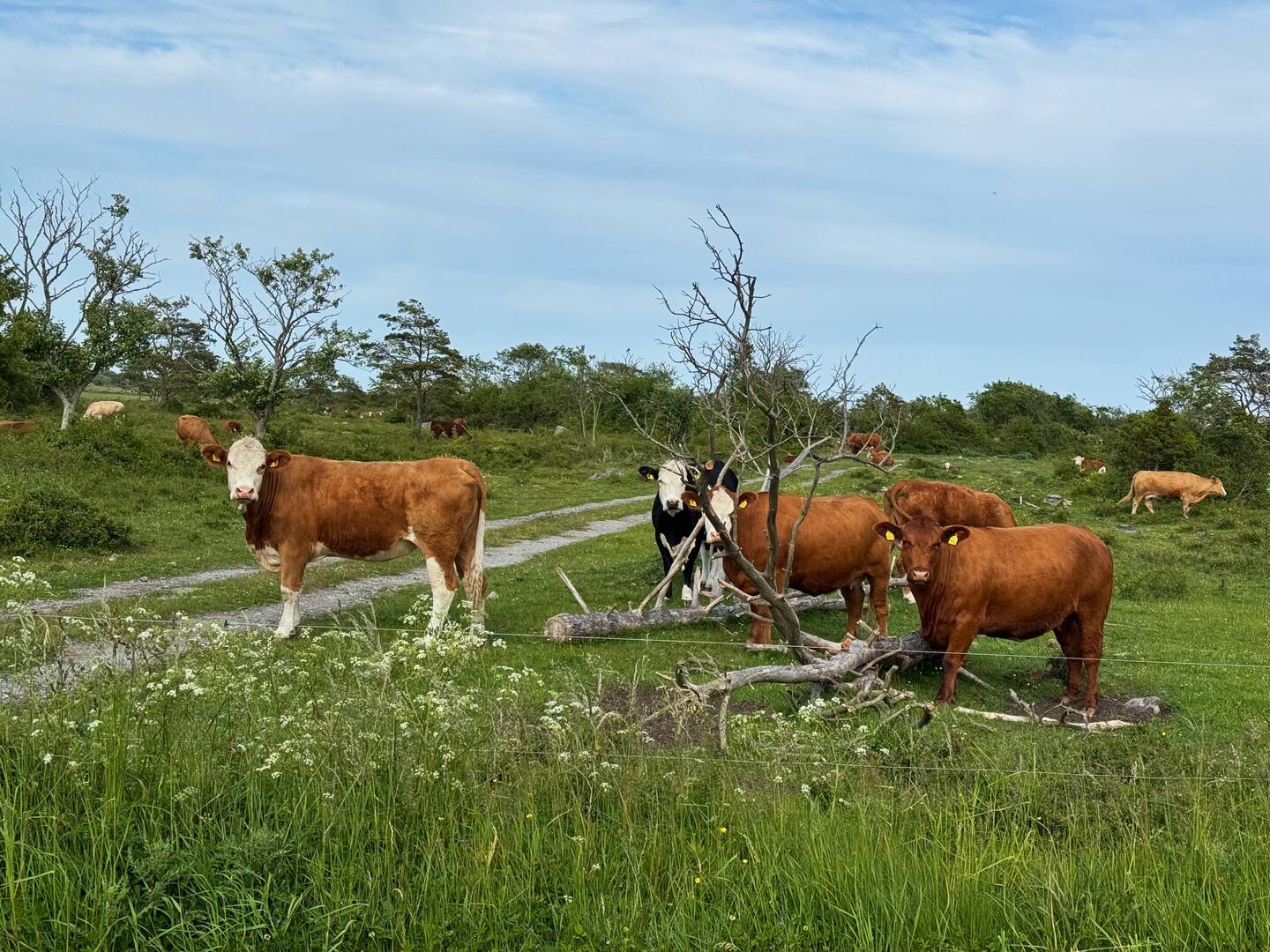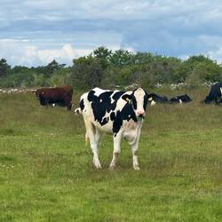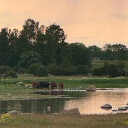 Julia hat sich danach noch etwa zwei Stunden mit den netten Nachbarn unterhalten, während Pascal und Nanuka erneut auf Erkundungstour waren. Diesmal waren die Kühe direkt am Wasser – Nanuka hat sie aber brav nur aus der Ferne beobachtet.