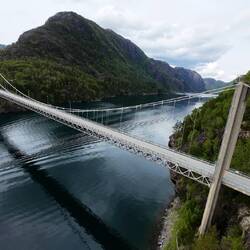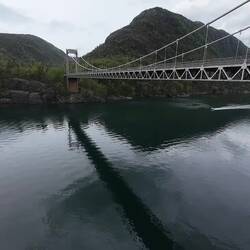 Etwa anderthalb Stunden später – mit toller Aussicht während der Fahrt – entdeckten wir eine beeindruckende Brücke.