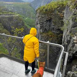 Unser erster offizieller Stopp war heute beim Vøringsfossen. Das Wetter war auf unserer Seite – bis auf etwas Wind und ein paar Tropfen Nieselregen war der Aufstieg wirklich angenehm.