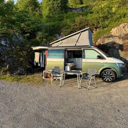 Also ab auf unseren Stellplatz für die Nacht, die Markise raus und darunter das Abendessen zubereitet.