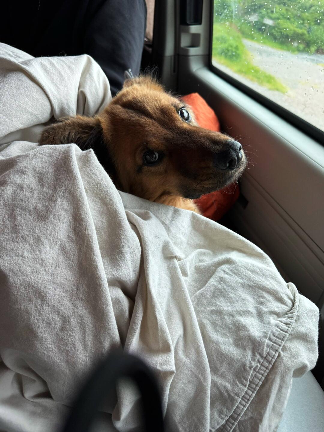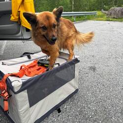 Während der Fahrt wechselten sich Sonnenschein und starker Regen ab. Zwischendurch legten wir eine kurze Pause ein: etwas Bewegung für uns und frische Luft für Nuki durften natürlich nicht fehlen.