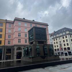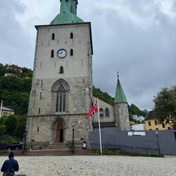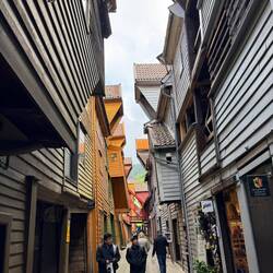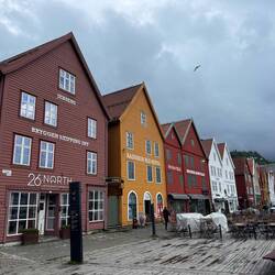 Punkt 18:00 Uhr – wie im Wetterbericht angekündigt – kam bei unserer Ankunft in Bergen sogar die Sonne heraus 🥰