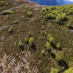 Der Weg zum Absturzort war abenteuerlich: Wir mussten uns durch rund 50 cm hohes Gras schlagen, voll mit Disteln, Spinnweben und allerlei Getier. Am Ziel angekommen, mussten wir feststellen: Kein Durchkommen. Pascal versuchte es trotzdem und kämpfte sich durch fast hüfthohes Gestrüpp – bis er plötzlich einer Schlange begegnete. Danach war Schluss.