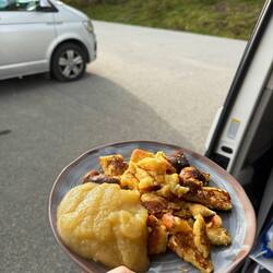 Nach dem Aufstehen ging es erst einmal zu den Sanitärräumen, um sich für den Tag frisch zu machen. Und was darf bei einem gelungenen Start natürlich nicht fehlen? Ein ausgiebiges Frühstück! Pascal hat uns eine köstliche Eierspeise gezaubert, die wir in aller Ruhe genießen konnten.