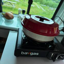 Am Abend gab’s dann wieder unsere geliebte Pizza aus dem Omnia – das beste Camping-Gadget überhaupt!